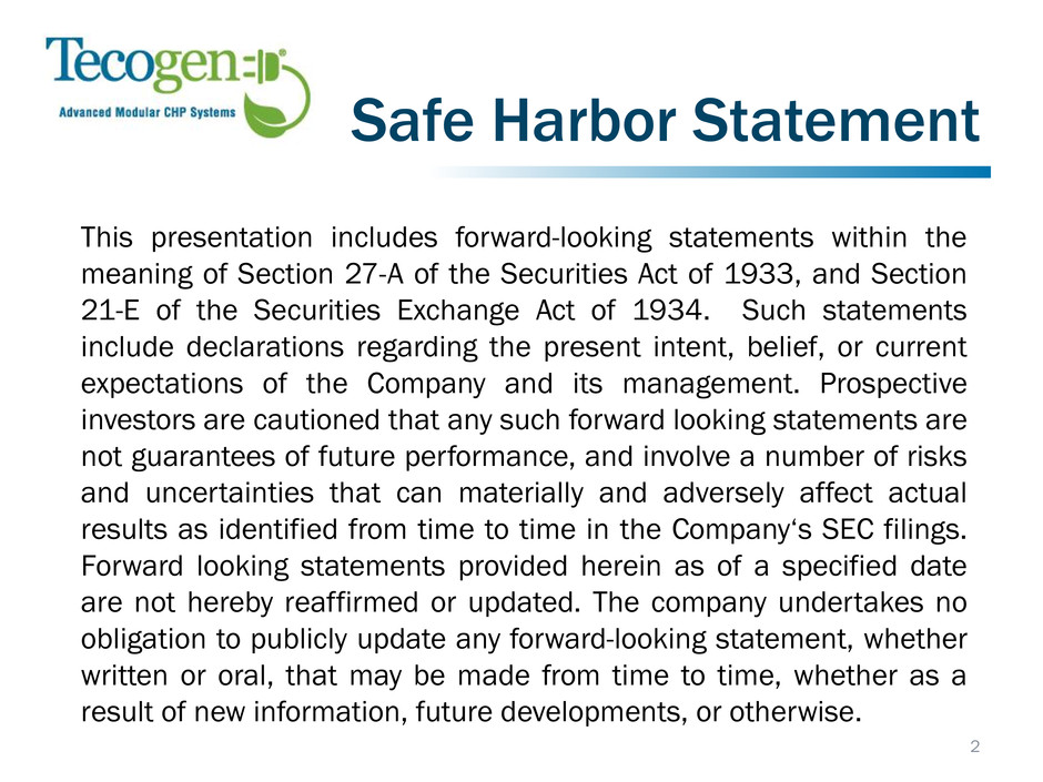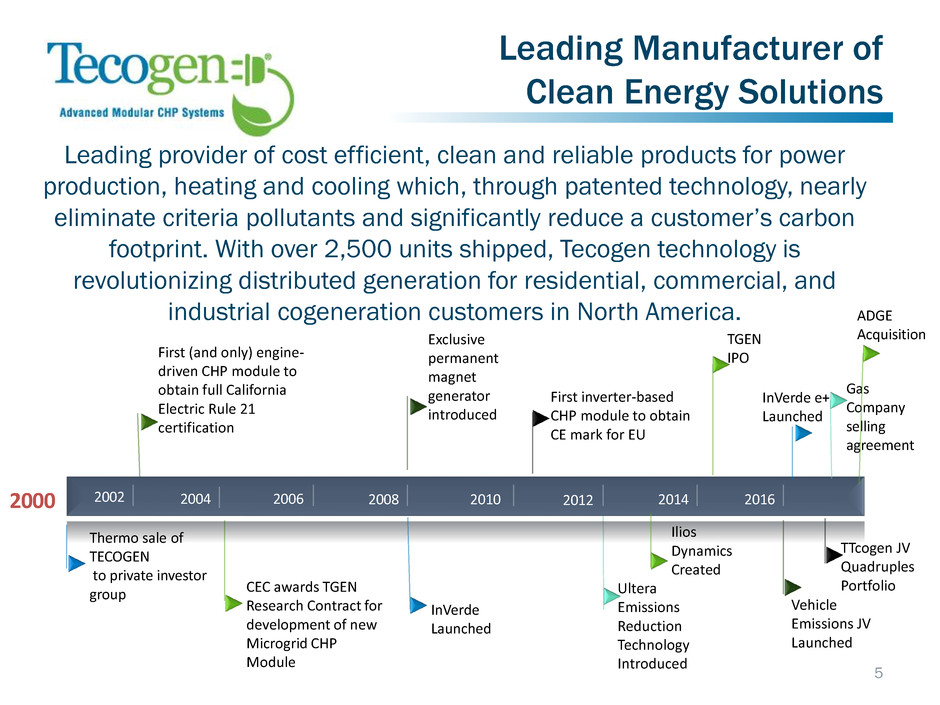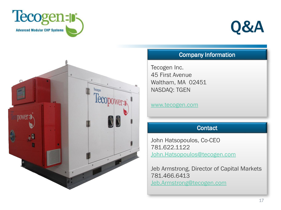 footprint. With over 2,500 units shipped, Tecogen technology is