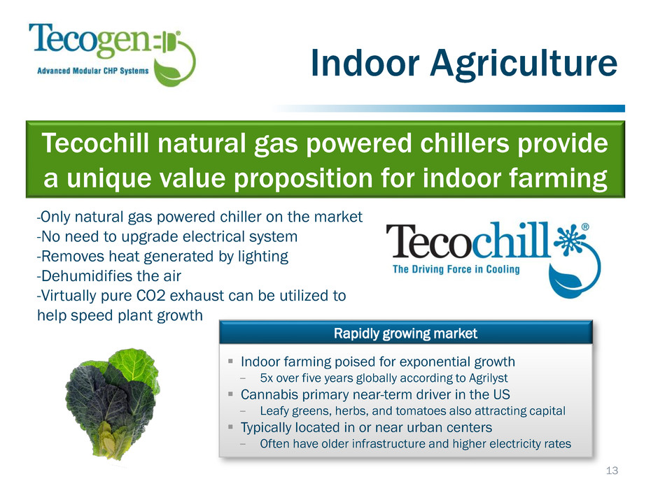 • Indoor agriculture industry increasingly recognizes value of natural gas-powered