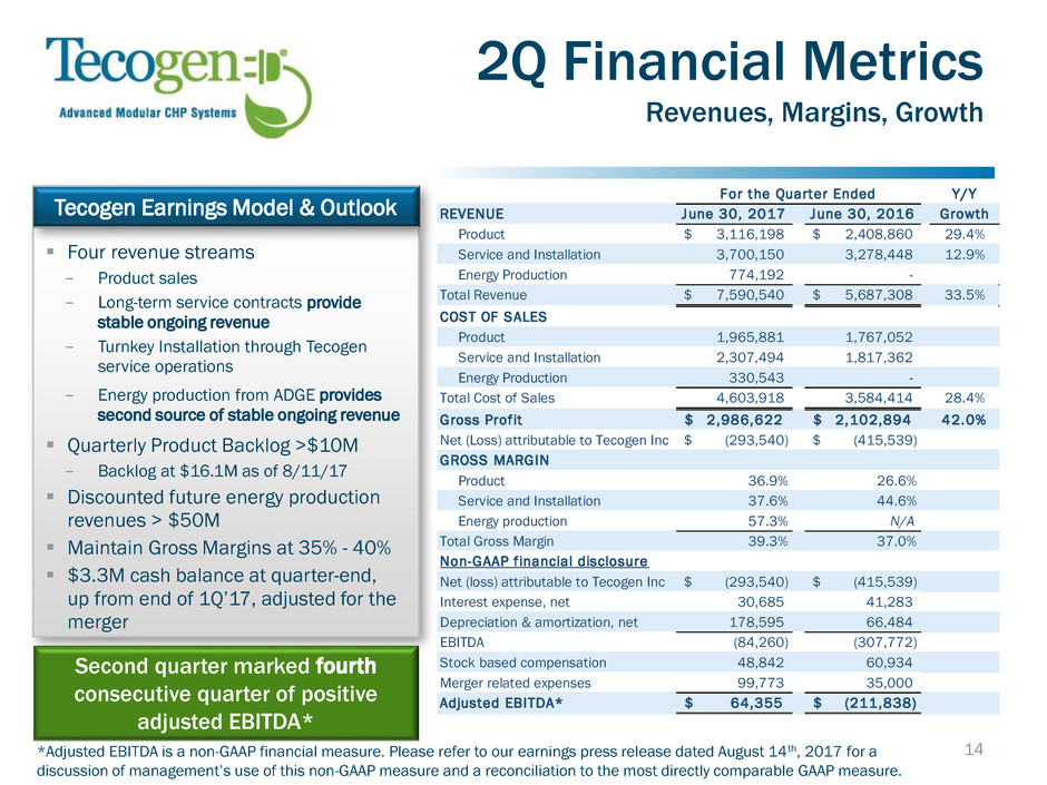 *Adjusted EBITDA is a non-GAAP financial measure. Please refer to our earnings press release dated August 14th, 2017 for a