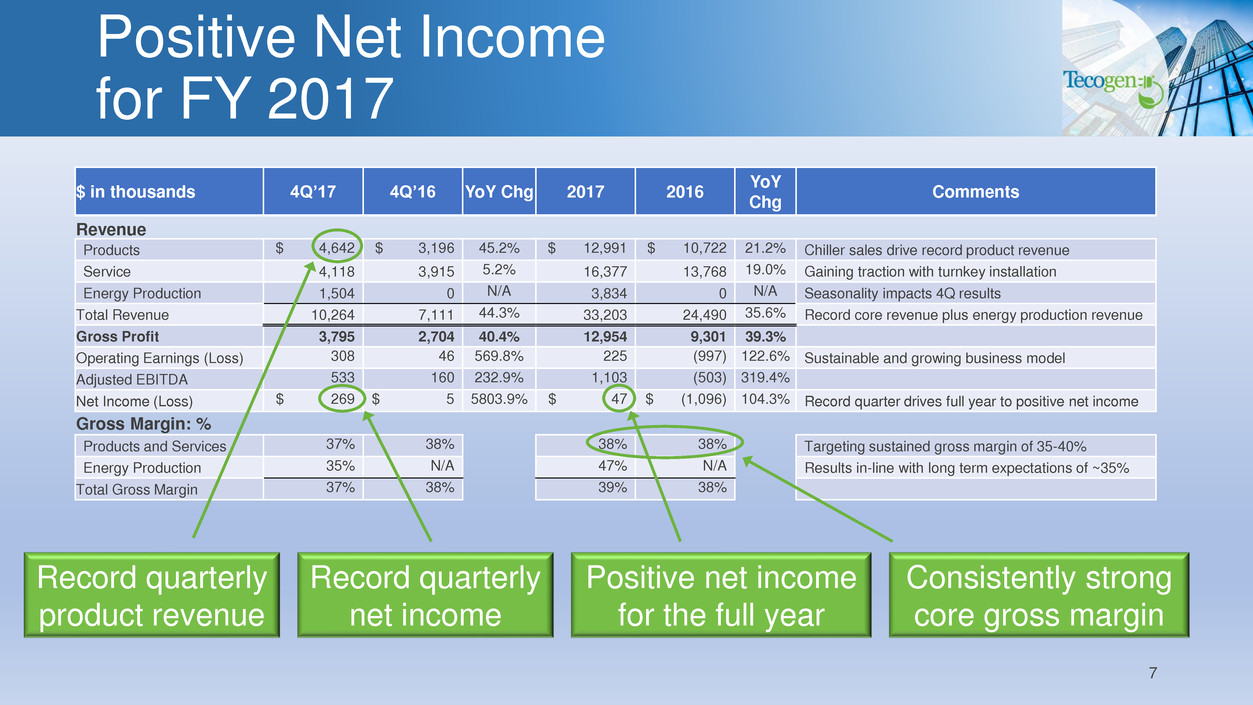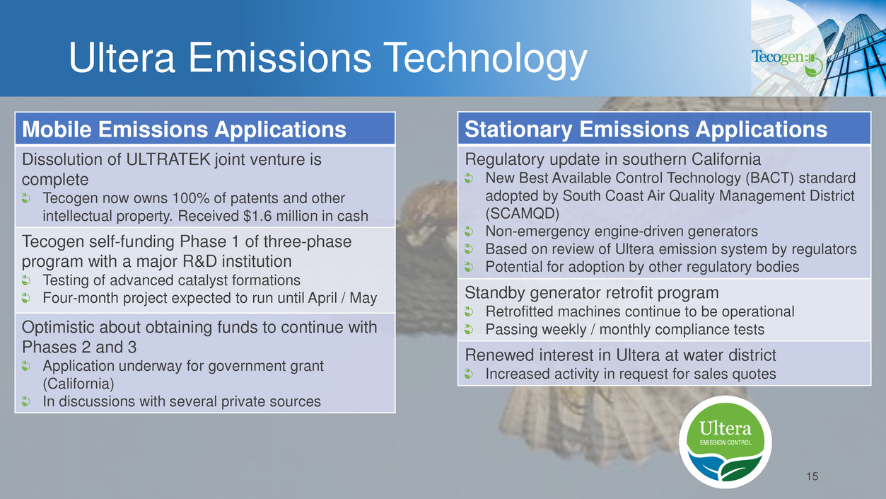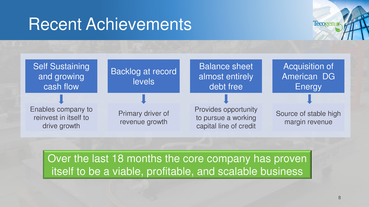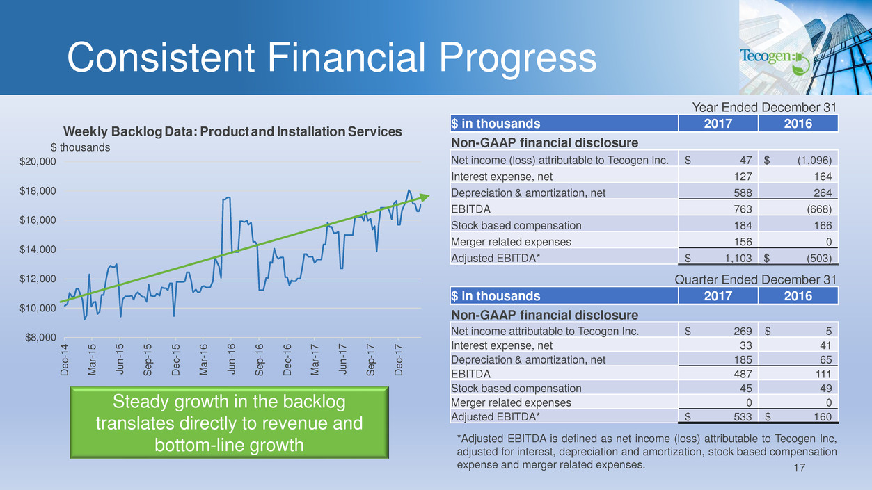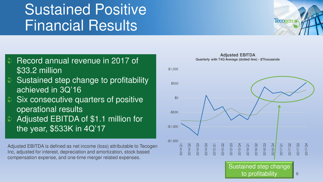 *Adjusted EBITDA is defined as net income (loss) attributable to Tecogen Inc,