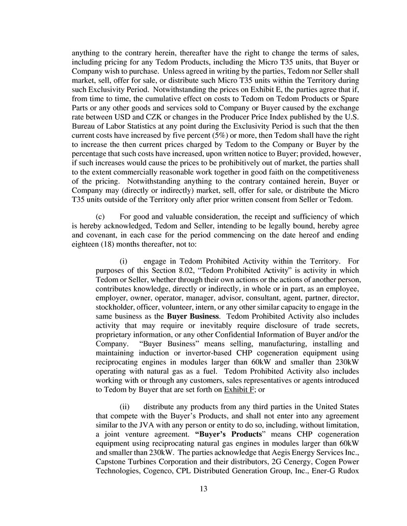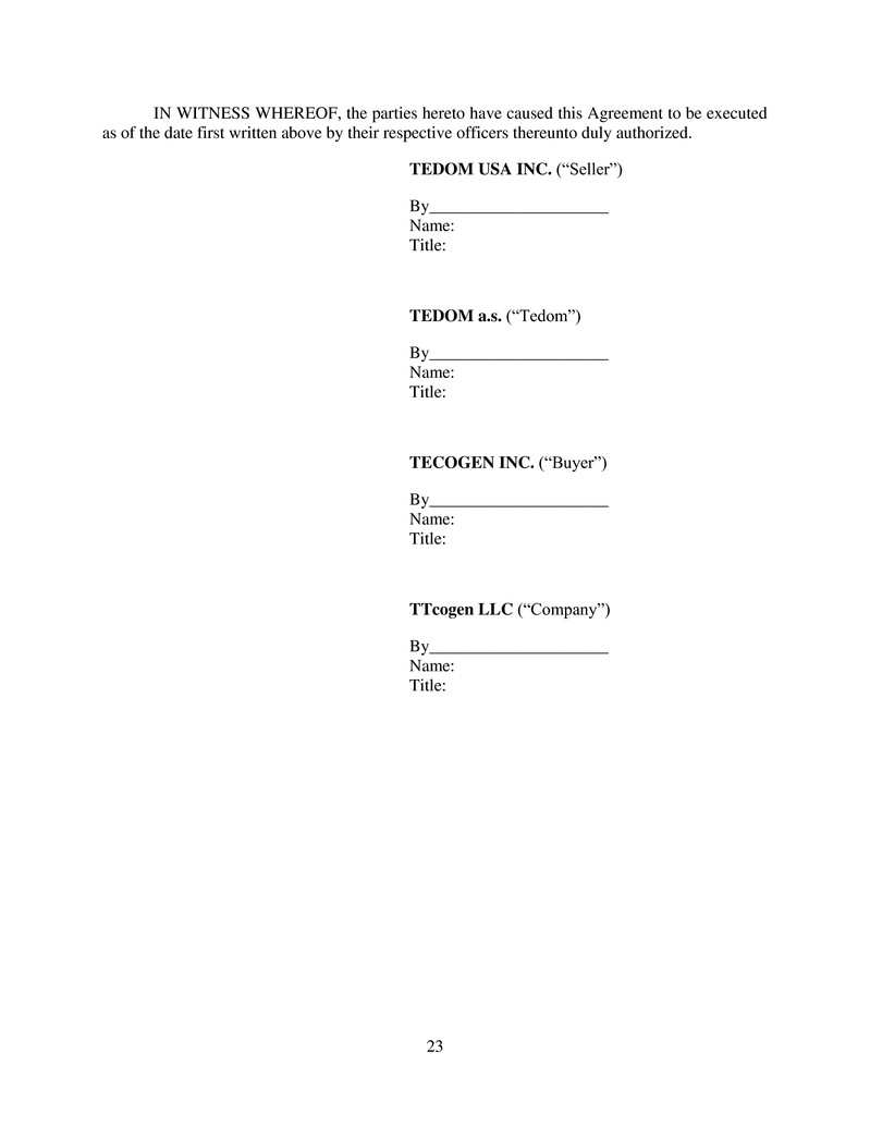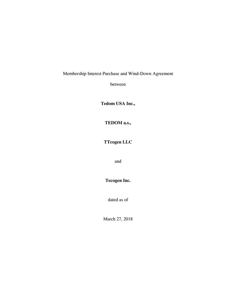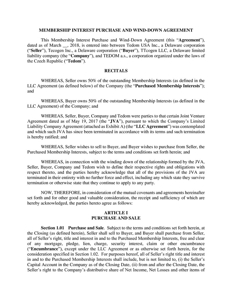 (“Seller”), Tecogen Inc., a Delaware corporation (“Buyer”), TTcogen LLC, a Delaware limited
