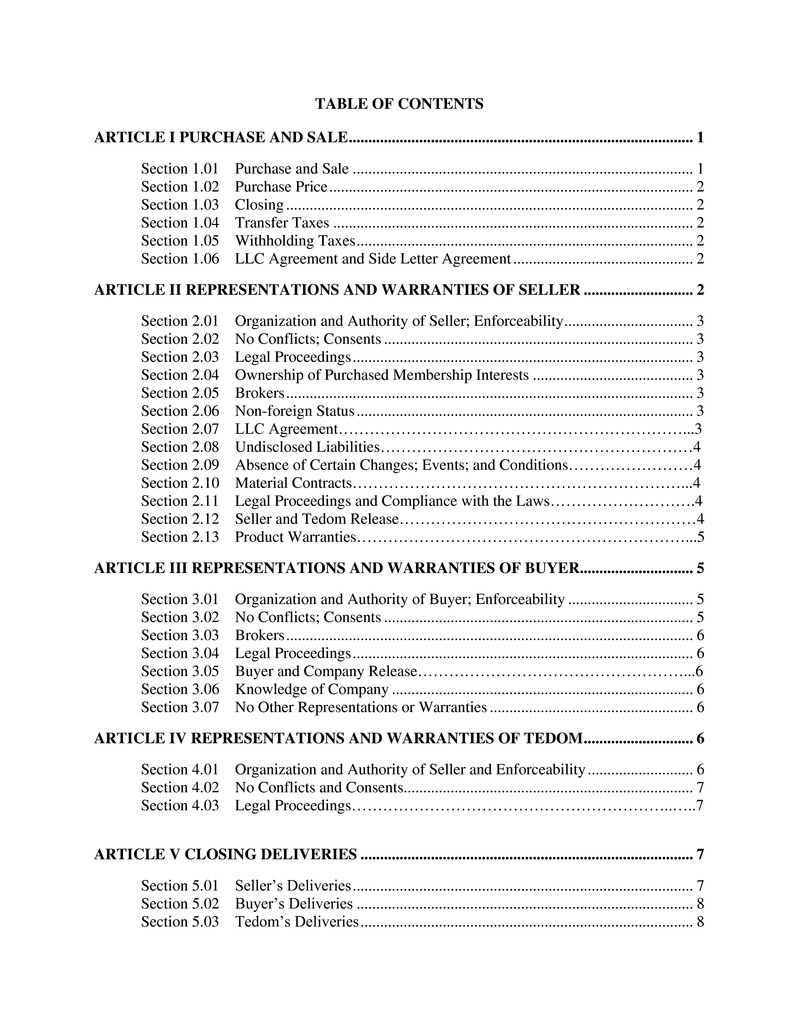 ARTICLE IV REPRESENTATIONS AND WARRANTIES OF TEDOM ............................ 6