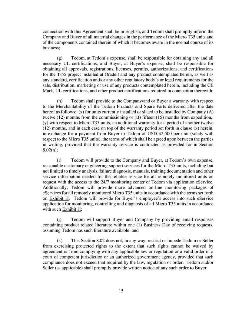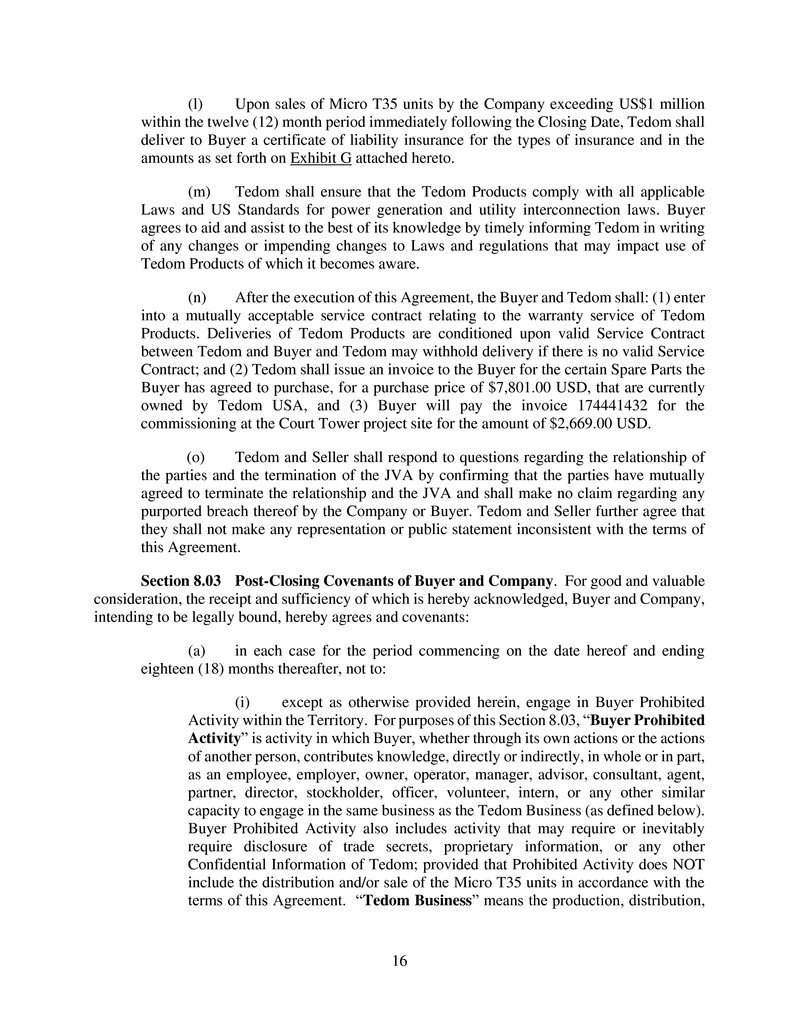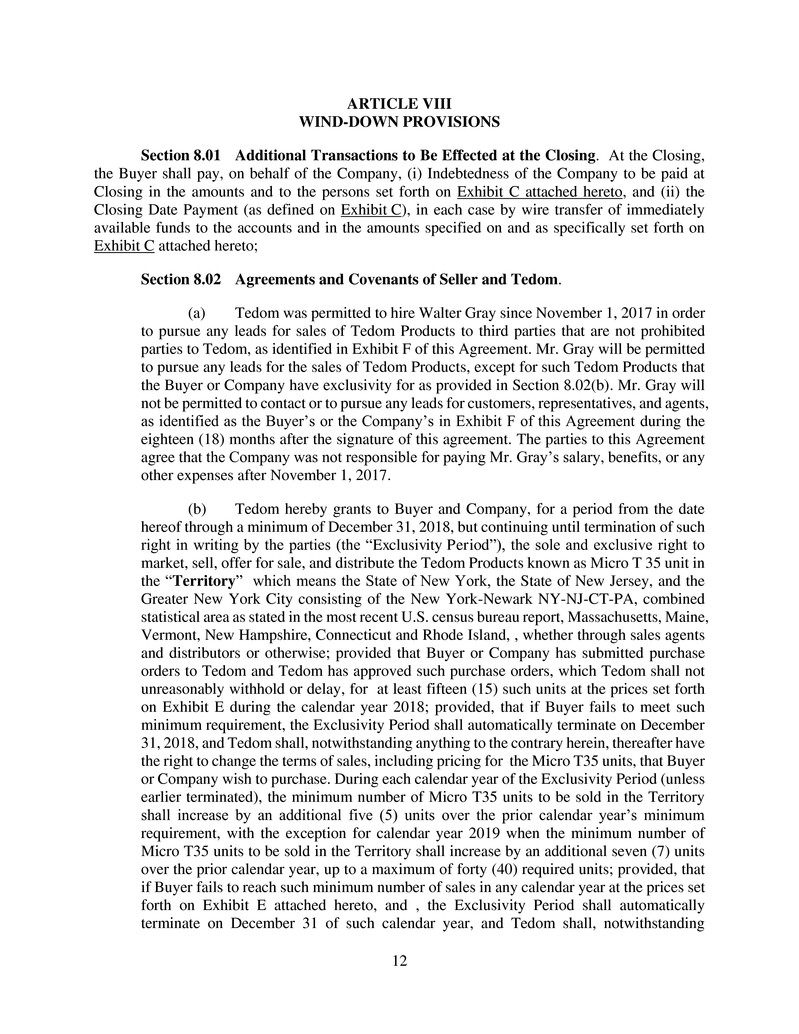 Section 8.02 Agreements and Covenants of Seller and Tedom ..................................... 12