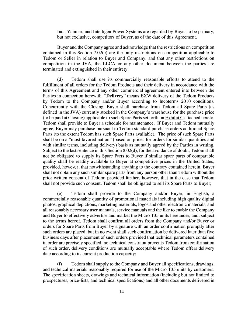 liability company (the “Company”), and TEDOM a.s., a corporation organized under the laws of