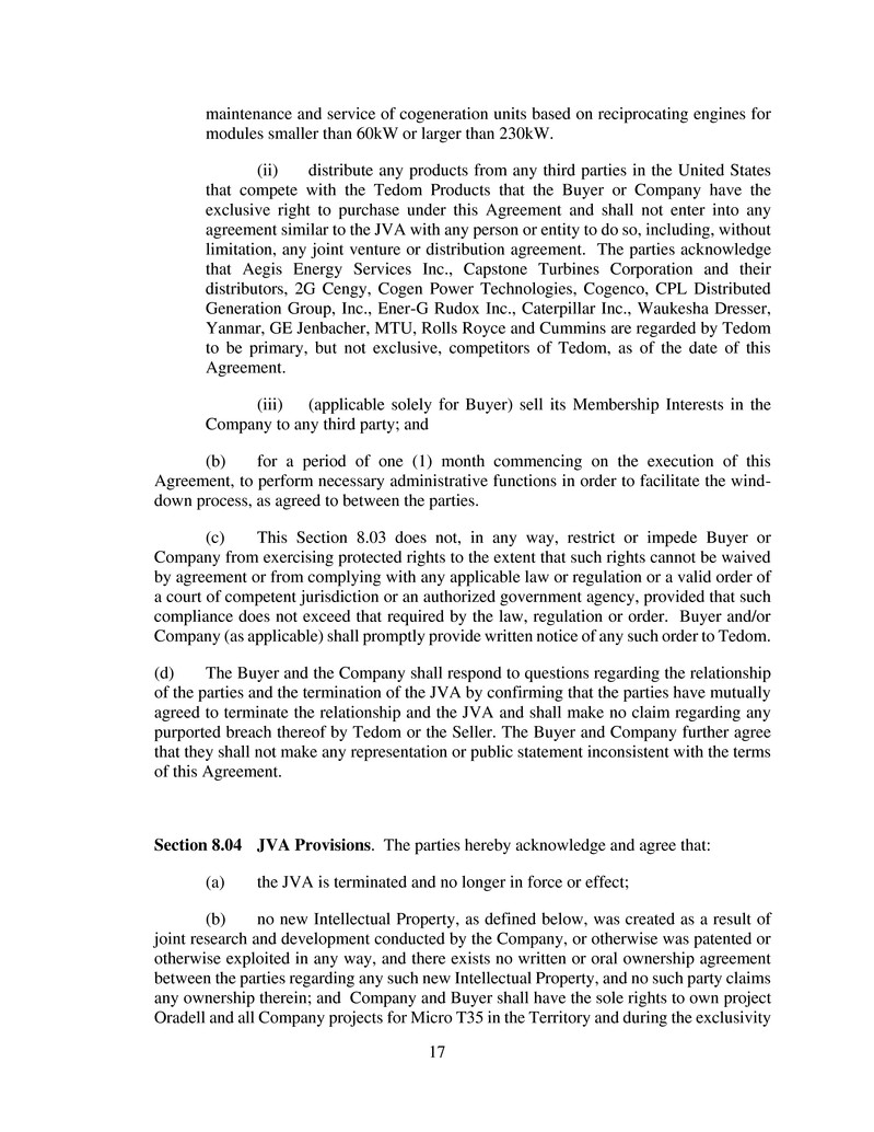 WHEREAS, Seller, Buyer, Company and Tedom were parties to that certain Joint Venture