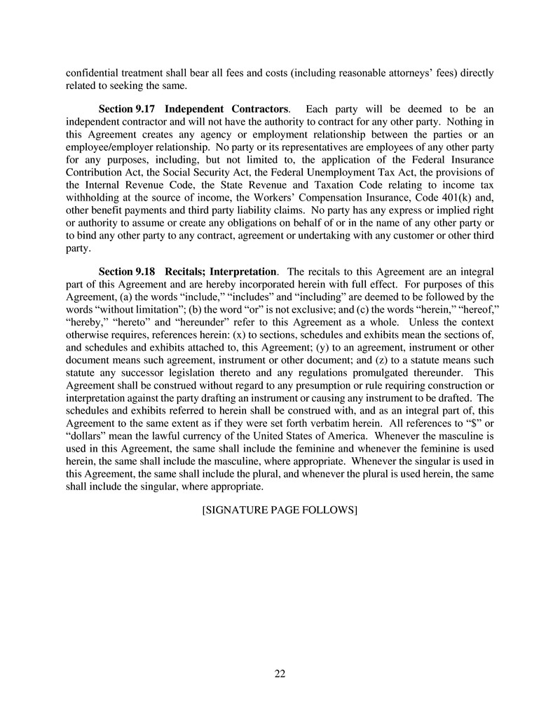 Section 9.18 Recitals; Interpretation .............................................................................. 22