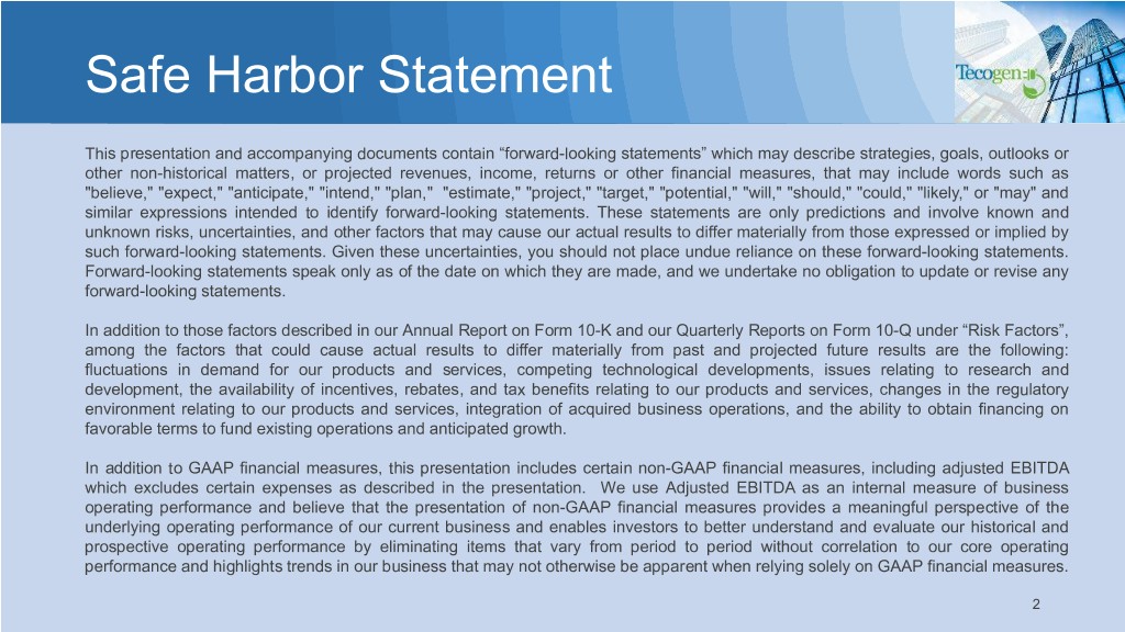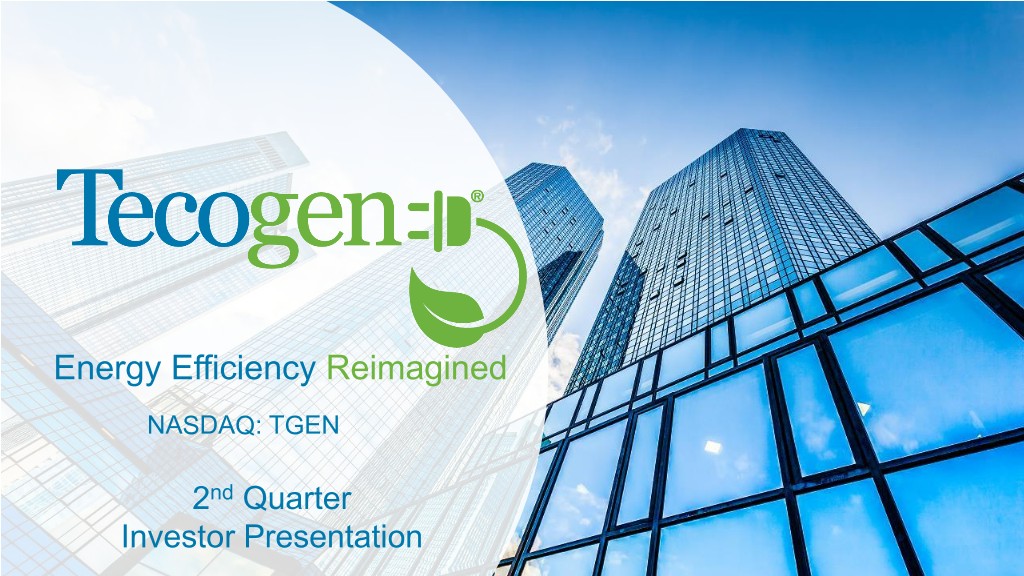 Energy Efficiency Reimagined NASDAQ: TGEN 2nd Quarter Investor Presentation