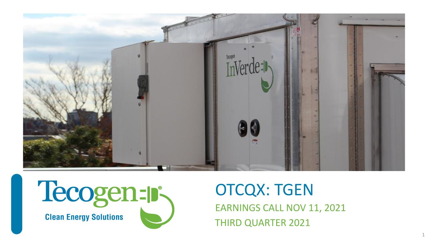 OTCQX: TGEN THIRD QUARTER 2021 EARNINGS CALL NOV 11, 2021 1