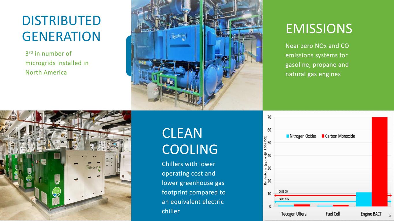 DISTRIBUTED GENERATION CLEAN COOLING Chillers with lower operating cost and lower greenhouse gas footprint compared to an equivalent electric chiller EMISSIONS 3rd in number of microgrids installed in North America Near zero NOx and CO emissions systems for gasoline, propane and natural gas engines 6