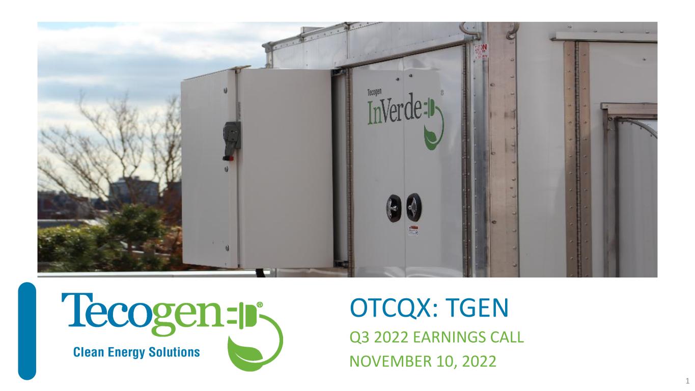 OTCQX: TGEN NOVEMBER 10, 2022 Q3 2022 EARNINGS CALL 1