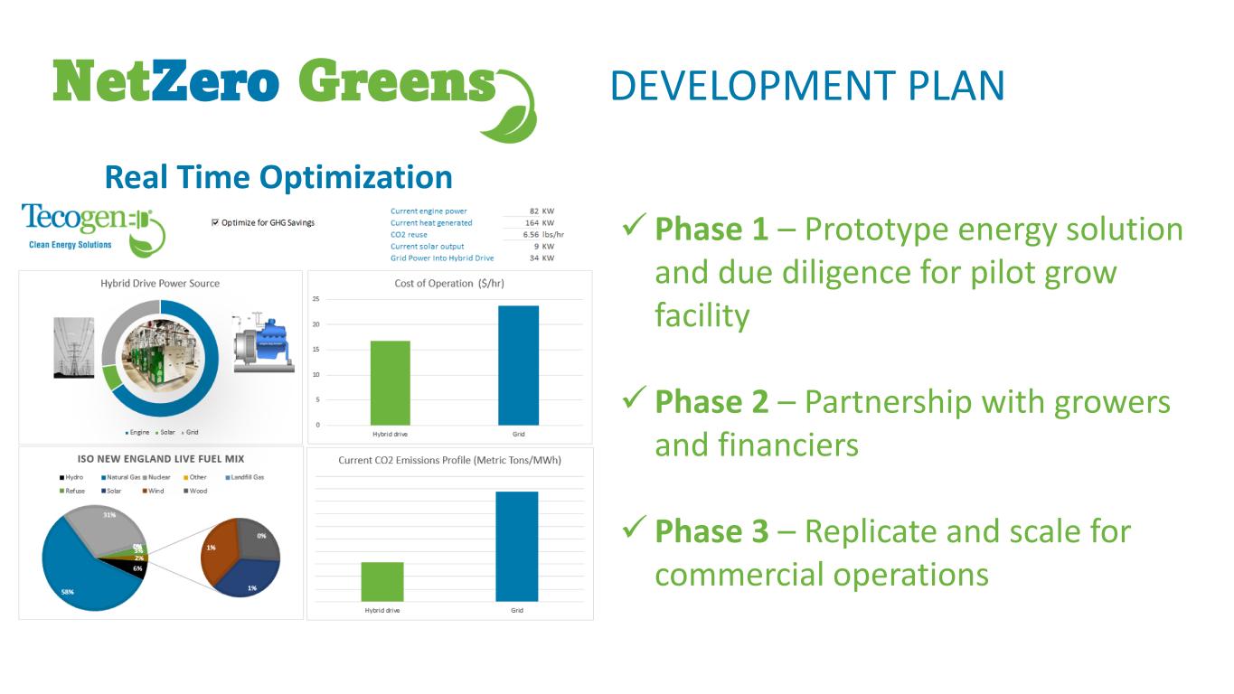 ✓ Phase 1 – Prototype energy solution and due diligence for pilot grow facility ✓ Phase 2 – Partnership with growers and financiers ✓ Phase 3 – Replicate and scale for commercial operations DEVELOPMENT PLANNetZero Greens Real Time Optimization