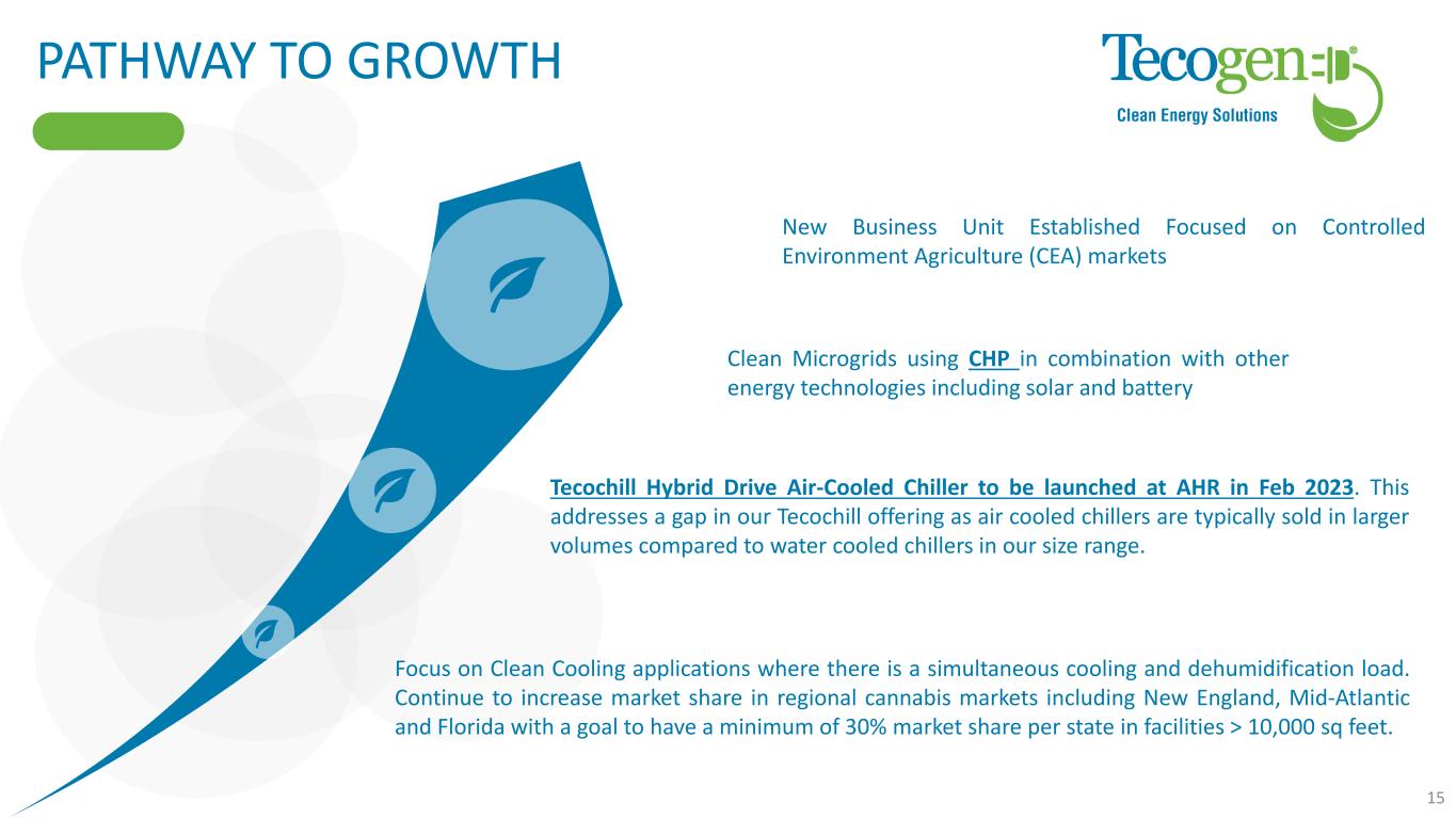 PATHWAY TO GROWTH Tecochill Hybrid Drive Air-Cooled Chiller to be launched at AHR in Feb 2023. This addresses a gap in our Tecochill offering as air cooled chillers are typically sold in larger volumes compared to water cooled chillers in our size range. Focus on Clean Cooling applications where there is a simultaneous cooling and dehumidification load. Continue to increase market share in regional cannabis markets including New England, Mid-Atlantic and Florida with a goal to have a minimum of 30% market share per state in facilities > 10,000 sq feet. Clean Microgrids using CHP in combination with other energy technologies including solar and battery 15 New Business Unit Established Focused on Controlled Environment Agriculture (CEA) markets