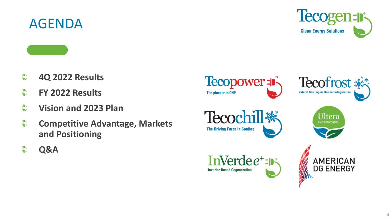 AGENDA 4Q 2022 Results FY 2022 Results Vision and 2023 Plan Competitive Advantage, Markets and Positioning Q&A 4